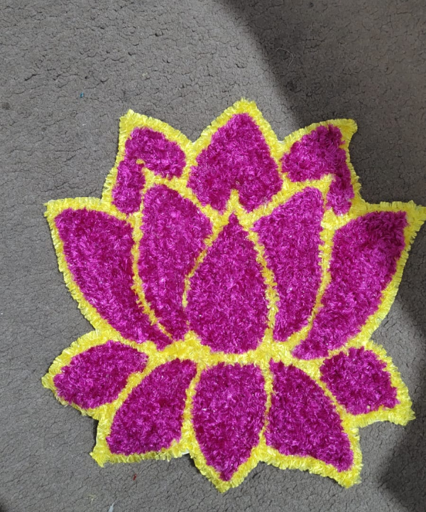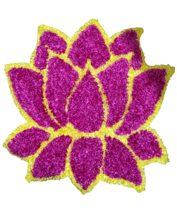 Bring home divine beauty with this handmade lotus-shaped mat, crafted with soft and vibrant materials. Designed in shades of pink lotus petals and green leaves, this piece symbolizes purity, prosperity, and positive energy.