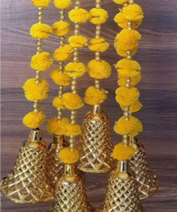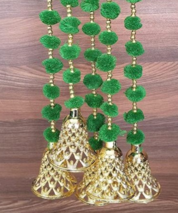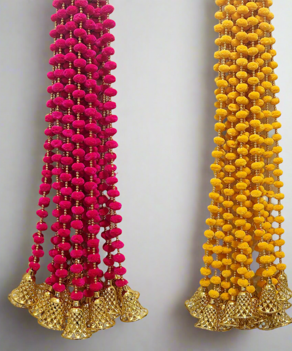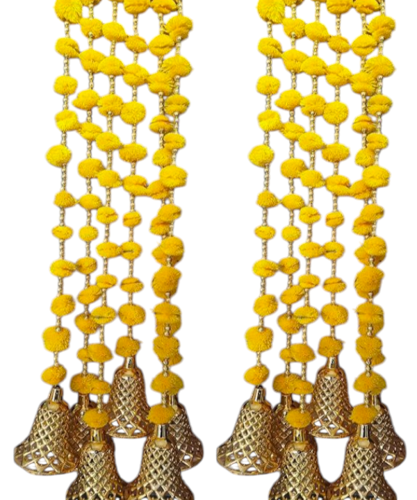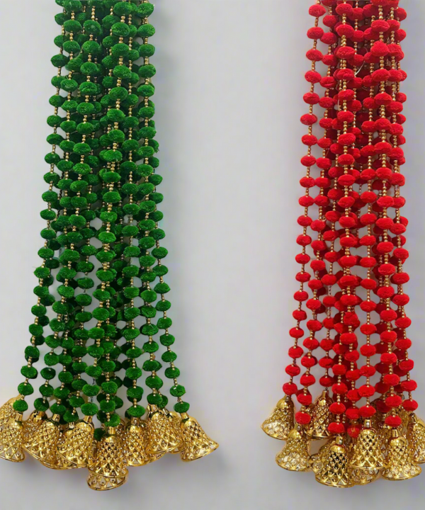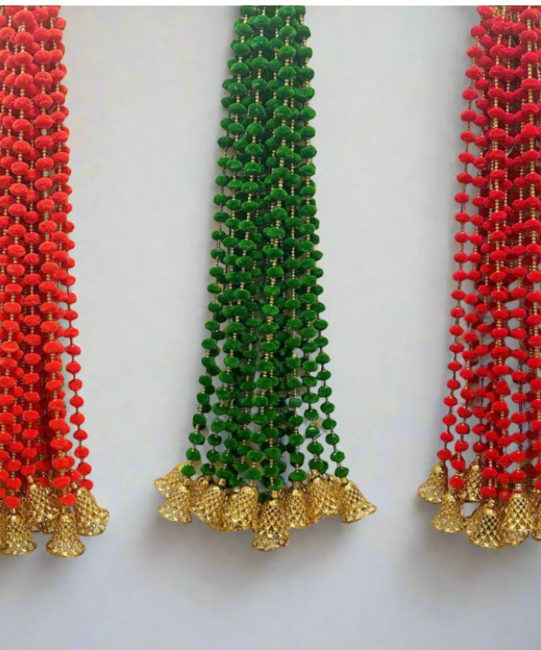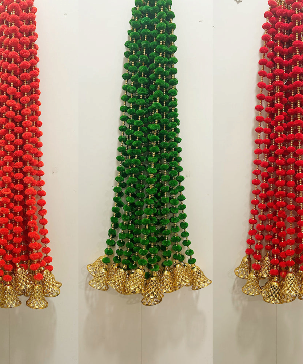 Add a traditional yet stylish charm to your home and festive décor with this pom-pom latkan toran. Designed with vibrant pom-poms in red, yellow, green, blue and pink, beautifully combined with golden beads and bells, this toran enhances the entrance, pooja room, or mandap setup.