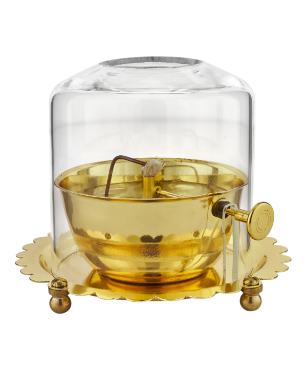 Illuminate your pooja room with this traditional Brass Akhand Jyot Diya, designed for uninterrupted sacred flame during prayers and rituals. The diya comes with a protective glass cover that keeps the flame safe from wind and dust while spreading divine radiance.