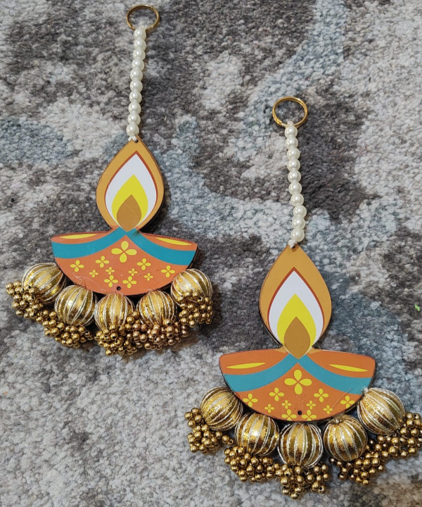 Its unique Diya design symbolizes light, positivity, and prosperity, making it the perfect decorative accessory for Diwali, Navratri, Weddings, Housewarming, and other religious ceremonies. Lightweight, reusable, and easy to hang – a must-have for every traditional home!