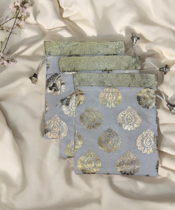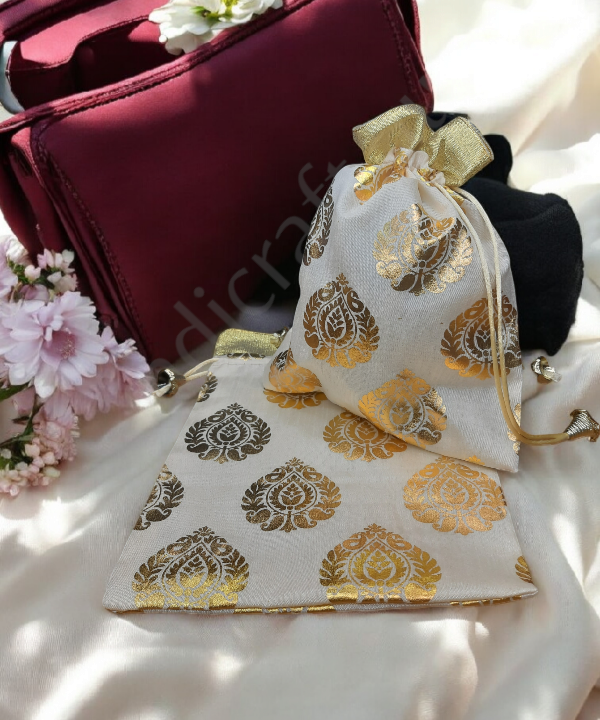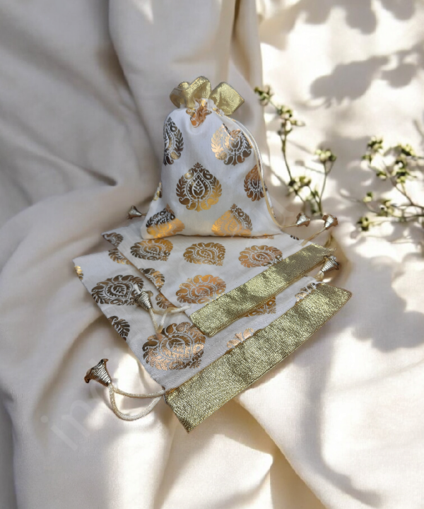 Add a touch of ethnic elegance to your celebrations with our beautifully handcrafted potli bags. Perfect for weddings, festive occasions, and gifting, these potlis are made with high-quality fabric and embellished with traditional embroidery or borders. Use them for return gifts, jewellery storage, or pooja essentials—these versatile pouches add charm to any event.