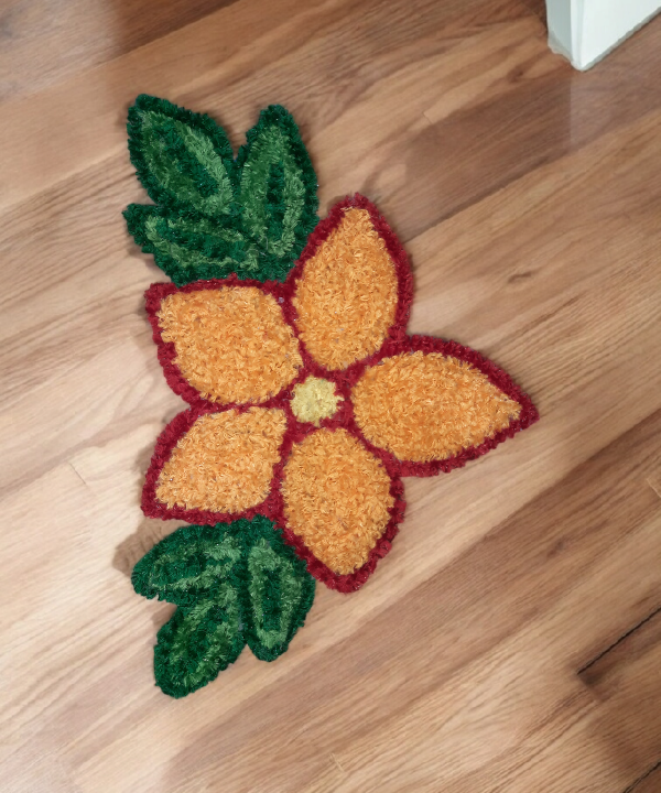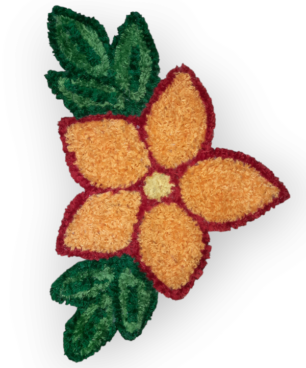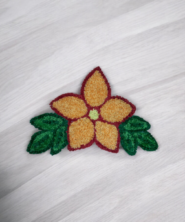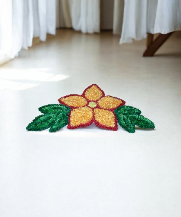 Add a touch of traditional charm and vibrant colors to your festive setup with this Handmade Flower with Leaf Rangoli Mat. Featuring a blooming floral design surrounded by lush green leaves, this woolen rangoli brings elegance, warmth, and a festive vibe to your space.