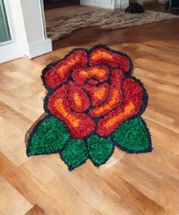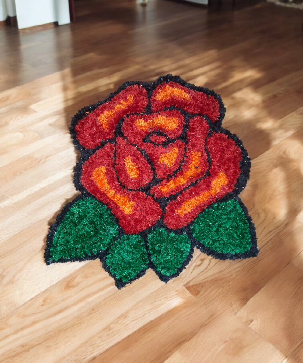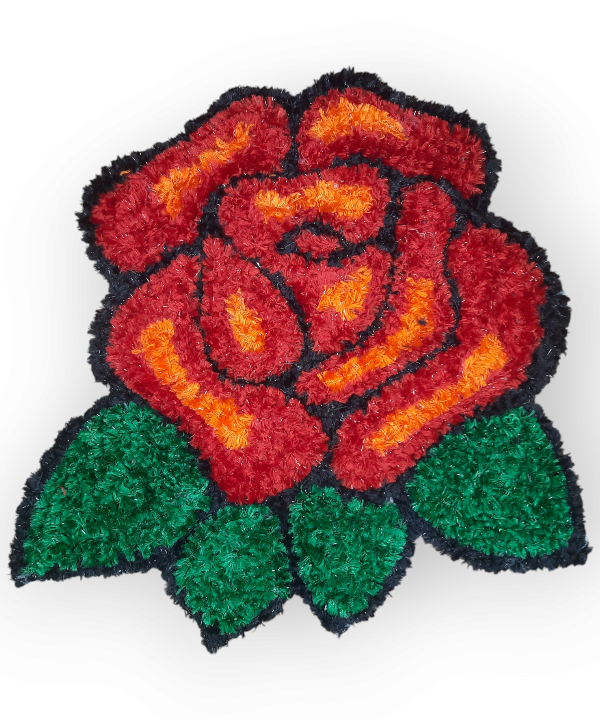 Bring timeless elegance to your home décor with this stunning Rose Design Woolen Rangoli Mat. Crafted with vibrant woolen threads and shaped into a blooming rose, this piece adds beauty, tradition, and a splash of color to your pooja room, entrance, or festive setup.