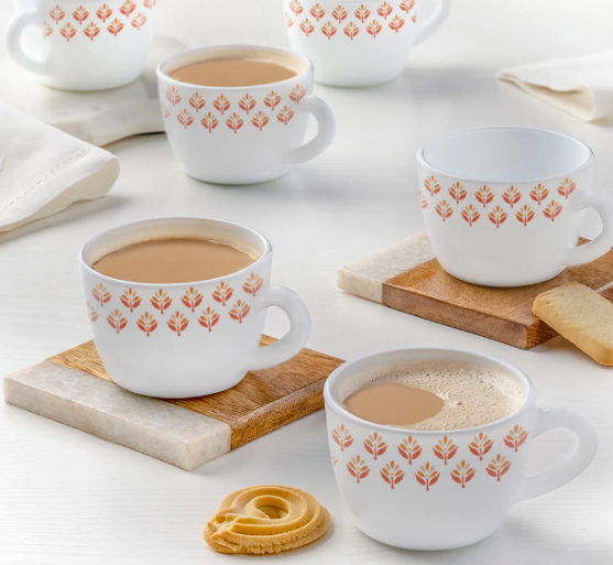 Made of toughened opal glass which is extra strong and long lasting.Chip and scratch resistant for carefree durability.Patterns won't fade or wear off, even after repeated use in the dishwasher.Does not absorb stains or odors.