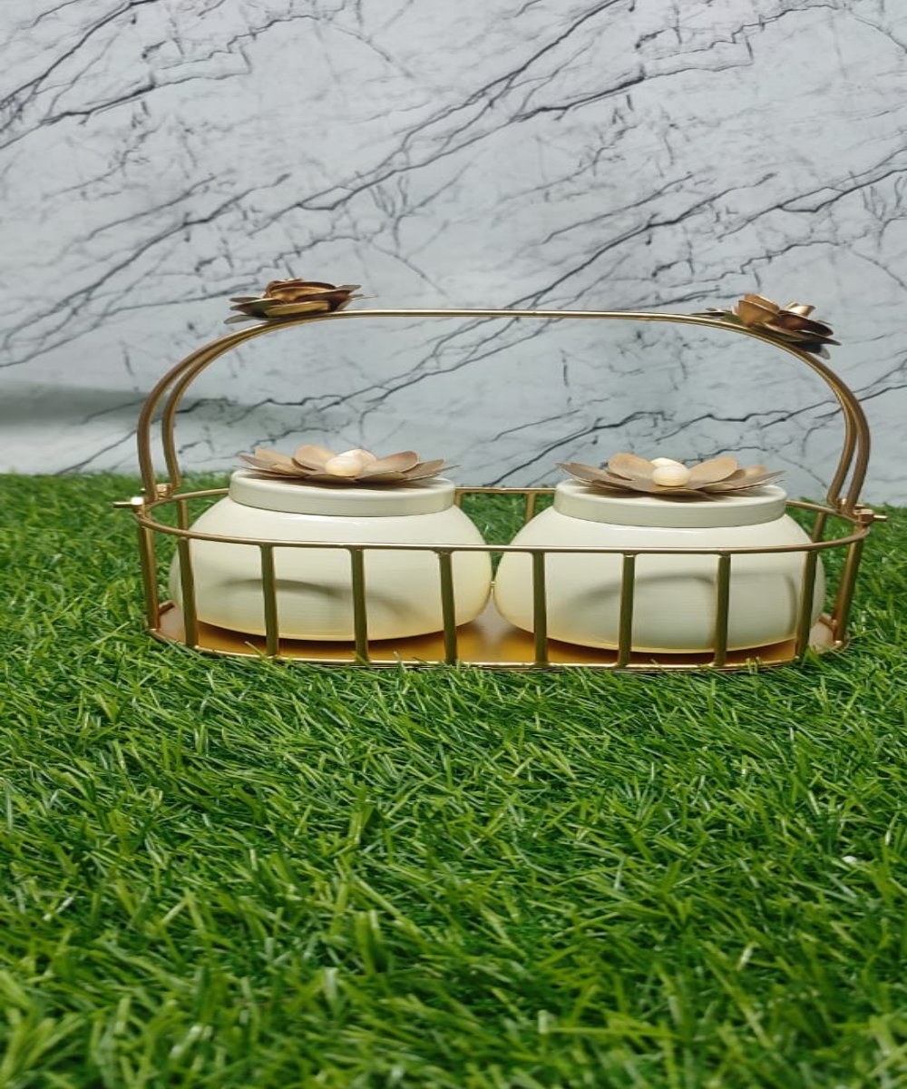 Name : Creative Metal Oval Basket | 2 Jar for Gift | Gold Star World Metal Basket | (Colour : Gold)