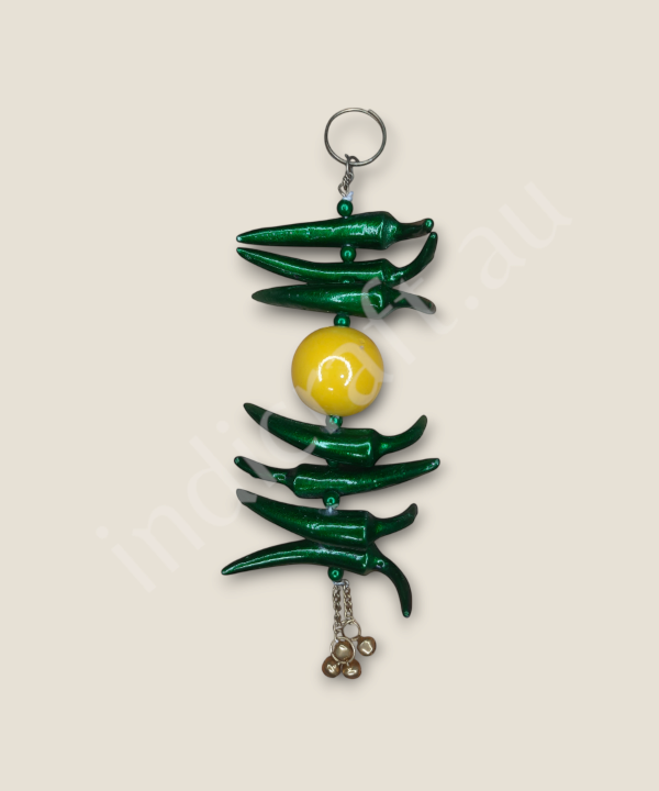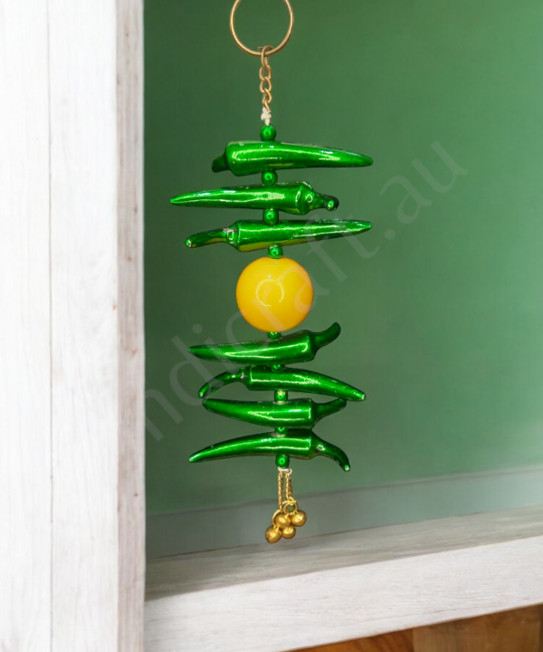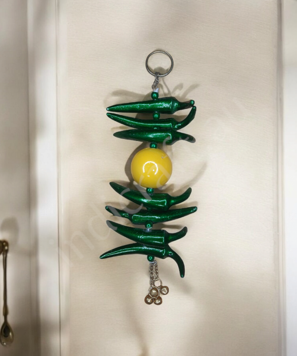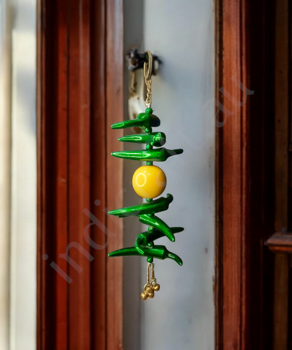 Protect your home and workplace from negative energy and evil eye with this traditional Nimbu Mirchi Wall Hanging. Symbolically combining lemons and green chilies, this age-old Vastu remedy is believed to ward off bad luck and bring positivity and prosperity.