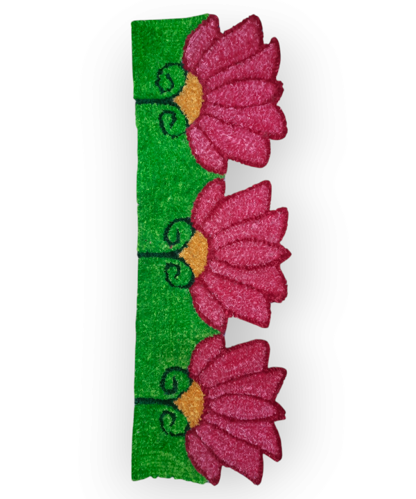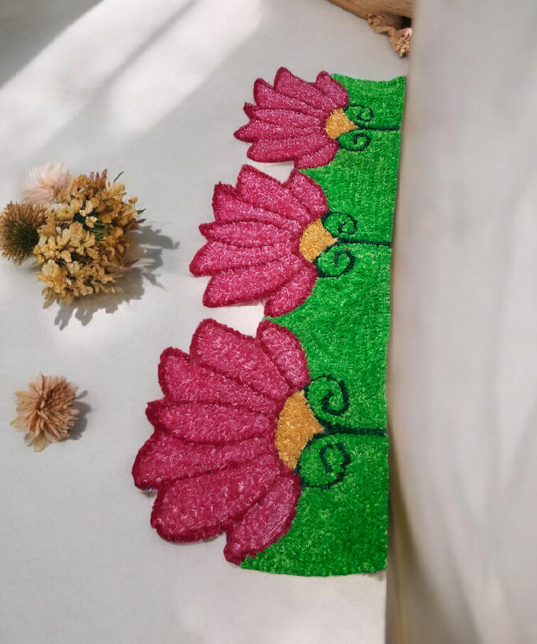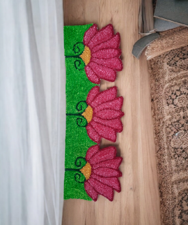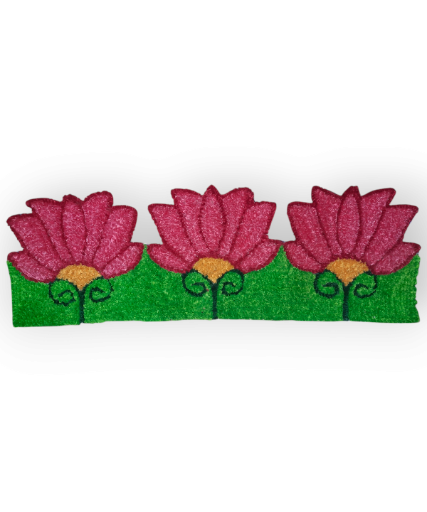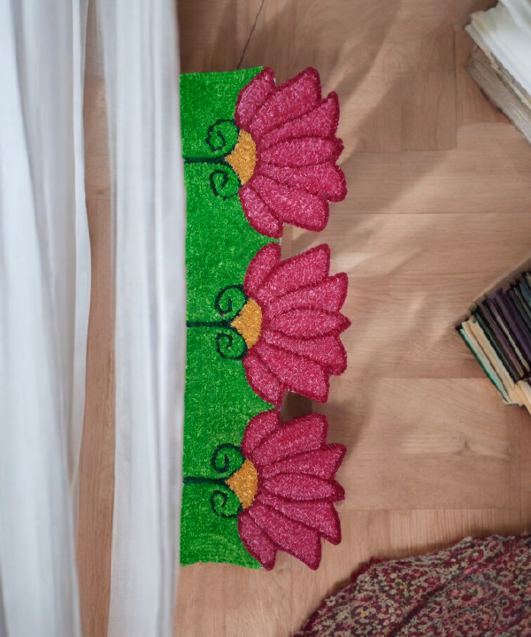 Carefully handmade using soft wool on a sturdy canvas base, this eco-friendly mat is a mess-free alternative to traditional rangoli powders. Its radiant pink petals and detailed craftsmanship make it ideal for Diwali, pooja rooms, wedding décor, or even a permanent floor accent.