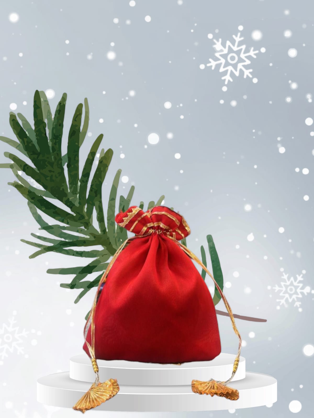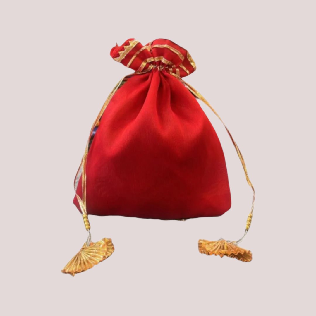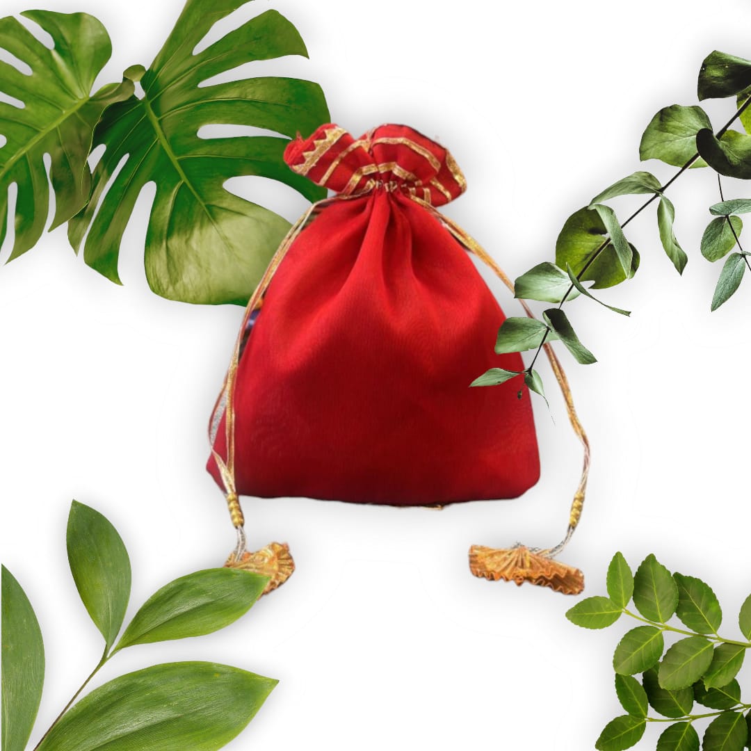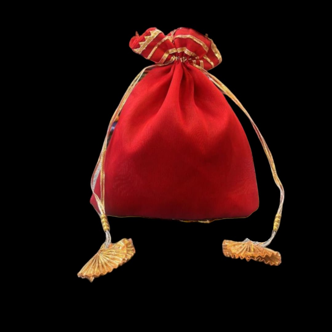 1 Pc Red with Golden Lace Gift Bag Jewellery/ Gift Potli