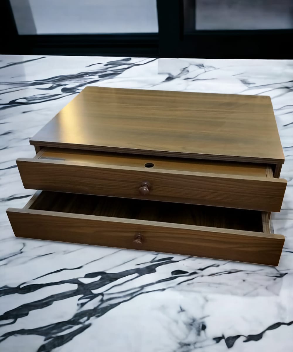 This solid wood drawer organizer is a versatile storage solution for your office or home. With two shelves and a sleek design, it can be used to organize files, desktop essentials, or even cosmetics. Its sturdy wooden construction ensures durability, while the compact size makes it perfect for any space.