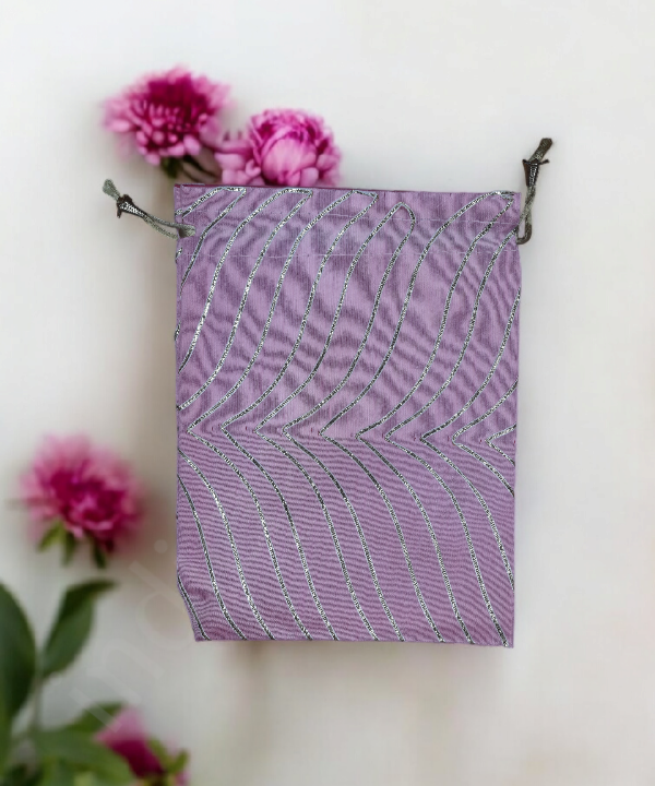 Add a touch of ethnic charm to your gifting with our beautifully embroidered drawstring cloth bags. Made with soft fabric and adorned with shimmering silver threadwork, these reusable pouches are ideal for weddings, return gifts, pooja essentials, jewelry, dry fruits, and more. Available in multiple vibrant colors, each pouch reflects traditional elegance and eco-friendly functionality.